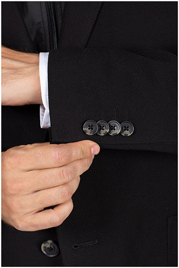 Americana de sport con dos botones y dos aberturas. Elegante y funcional. Tejido con textura puntillé. En su composición tiene elastán lo que le aporta elasticidad, alta comodidad, y durabilidad. Doble cuello desmontable con cremallera. Las tallas "T" so