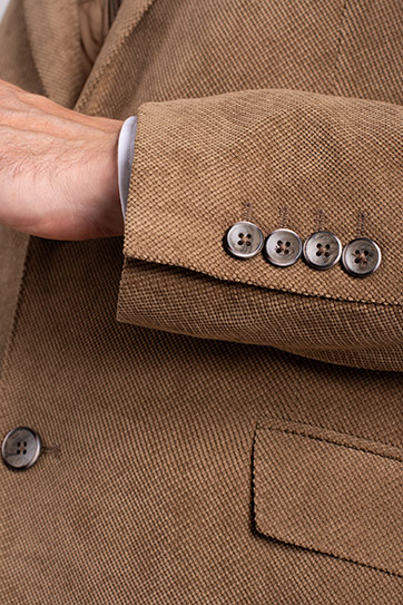 Americana de sport con dos botones y dos aberturas. Elegante y funcional. Doble cuello desmontable con cremallera. Hilo de botones combinados a tono. Tejido con textura puntillé.