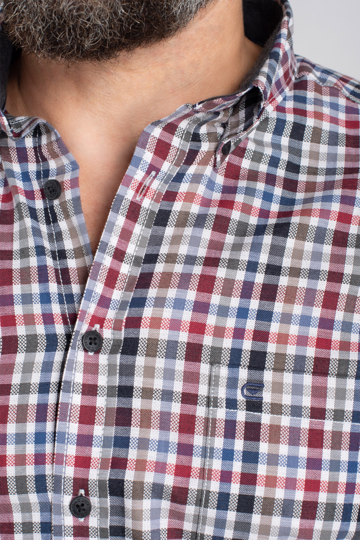 Camisa sport manga larga cuadro. Combinados a tono en interior de puños y cuello. Con bolsillo. Hilo de botones combinados a tono. Ideal para look "jeans","casual" y "rustico". Fabricada en un tejido 100% algodón ligero y de tacto suave.