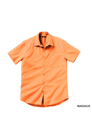 Camisa lisa de vestir manga corta con bolsillo en pecho.