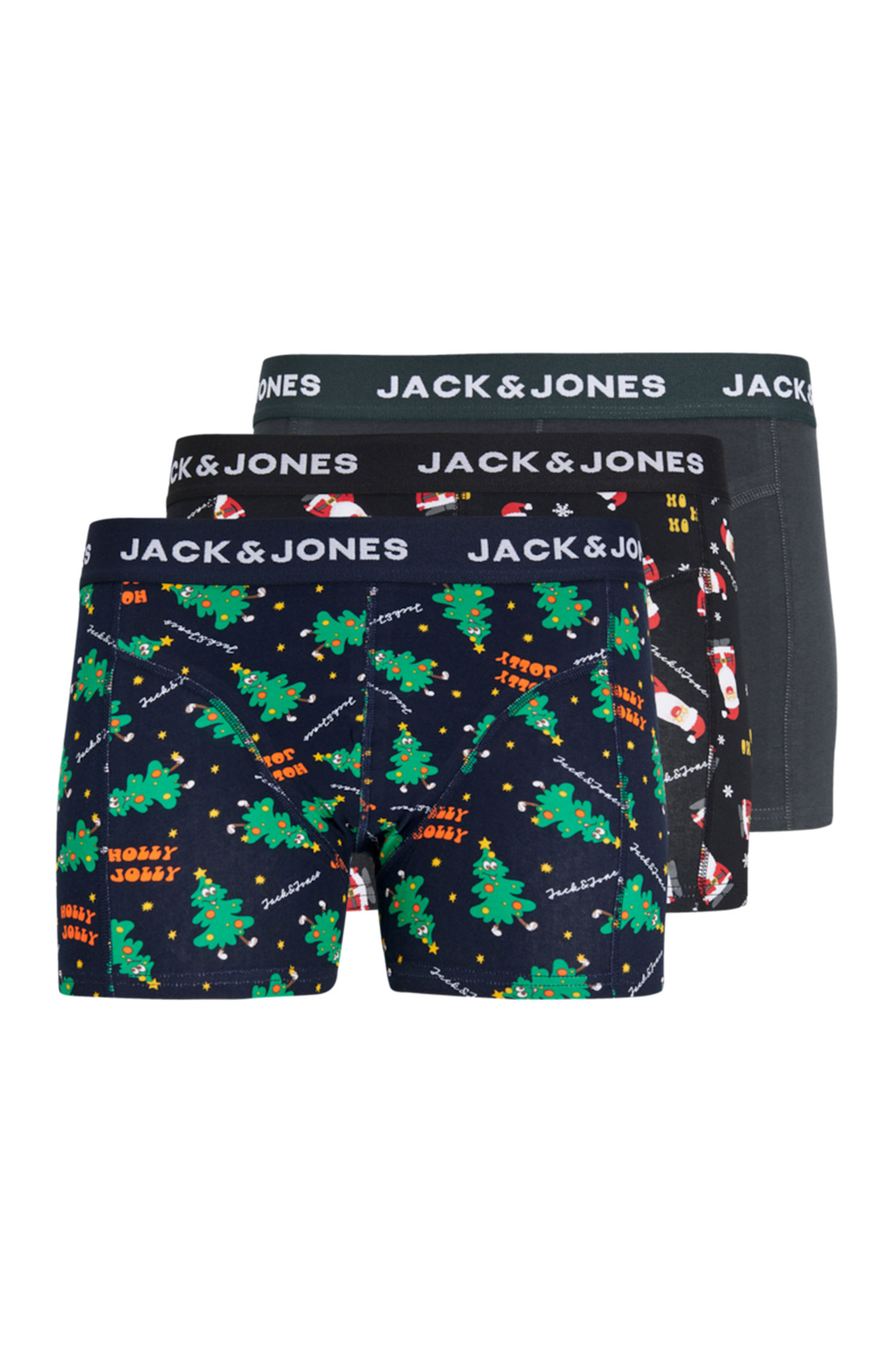 Pack-3 boxers compuesto por 2 boxers estampado navidad y 1 boxer liso gris.